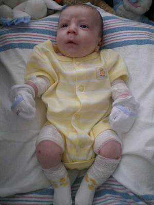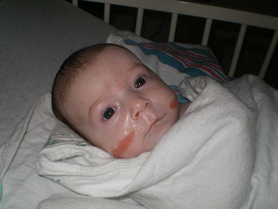 Logan Henry Braun was born August 28th, 1998 and died November 27th, 1998 at 3 months of age. He had the "Herlitz" Junctional form of EB and died because his airway blistered and he simply could not take another breath of air. He died in his mommy's arms as she was rocking him.