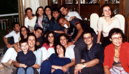 These are my friends! In the first bottom row, from the left, Ettore (RDEB) with mom Giuseppina (she was extra-close to them!), Maria (her sweet friend), Mariella (a friend she got from Giuseppina!), Flo (she accompanies her to conferences and made her laugh!), Nino (he taught her everything about computers, and not only that, he was one of her best friends!), Annamaria (she had known her forever and she helped her get her drivers license!). From right to left on the second row: Franca, Carmelo (with which we organized a youth group in church), Andrea (an old friend from high school), Maria Rosaria, Giuseppe, Alessandra (next to her), Francesca (doctor friend), Francesca, and finally Mr. Massimo!!